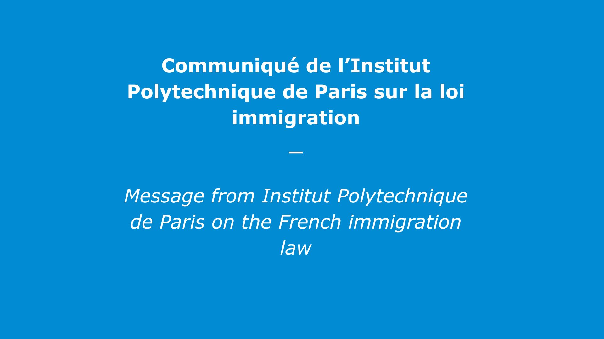 Communiqué de l’Institut Polytechnique de Paris sur la loi immigration