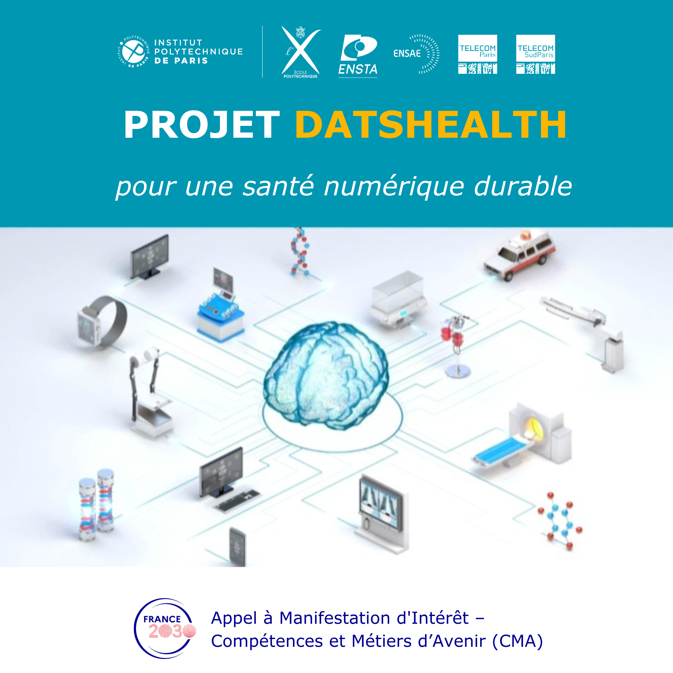 Le projet DaTSHealth s'inscrit dans la vision du gouvernement français, exprimée dans le Plan d'Investissement - France 2030, visant à former 2000 ingénieurs et spécialistes en santé numérique d'ici cinq ans. En réponse à cette initiative, IP Paris développe un programme de formation transdisciplinaire de haut niveau pour les ingénieurs, centré sur la compréhension et l'exploitation des données de santé.