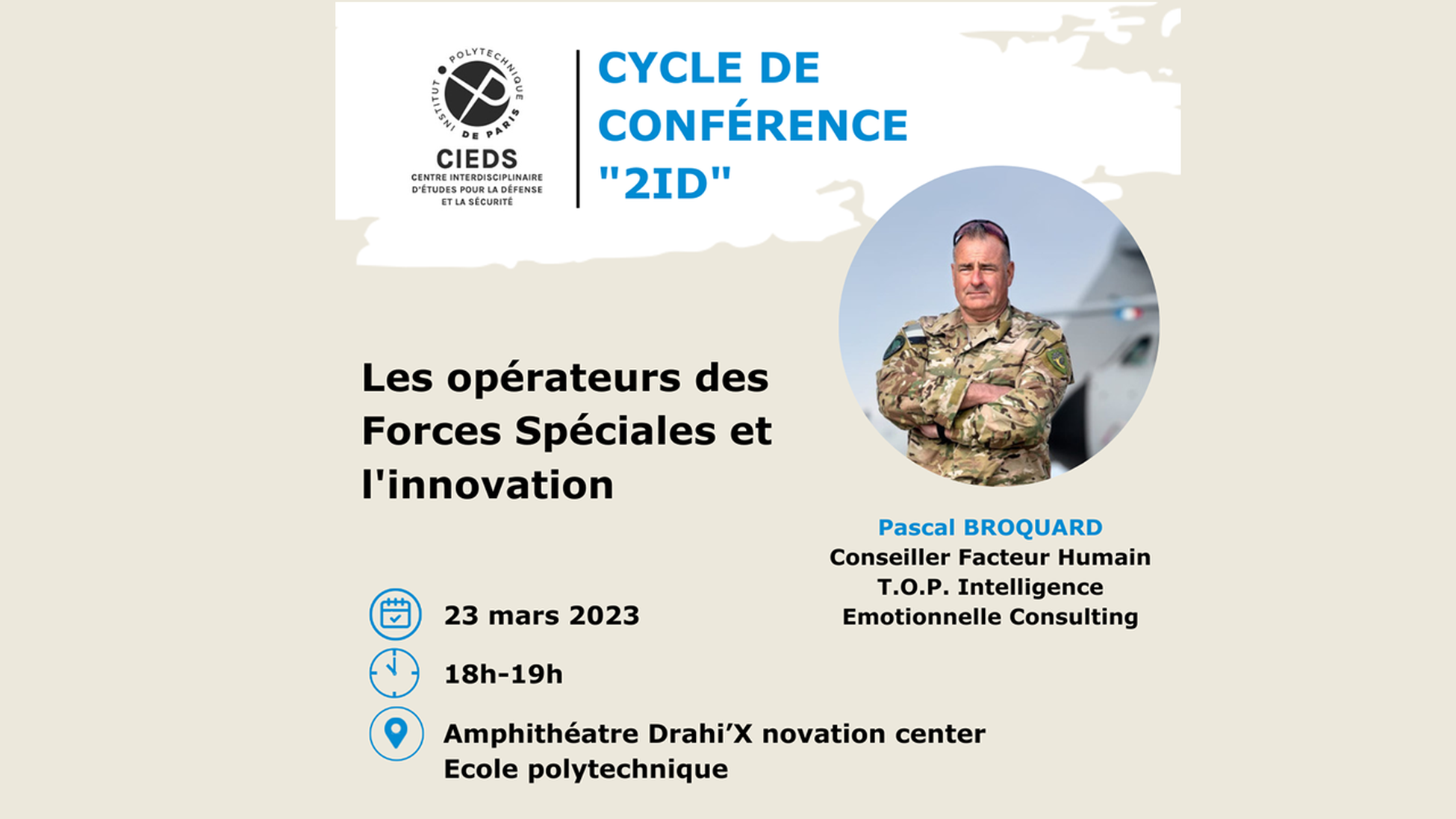 Pascal Broquard will present a conference (open to all) entitled " Special force staff and innovation " which will also be held in hybrid format (via zoom). The conference will be followed by a get together to facilitate direct exchanges with the speaker as well as with the CIEDS team.