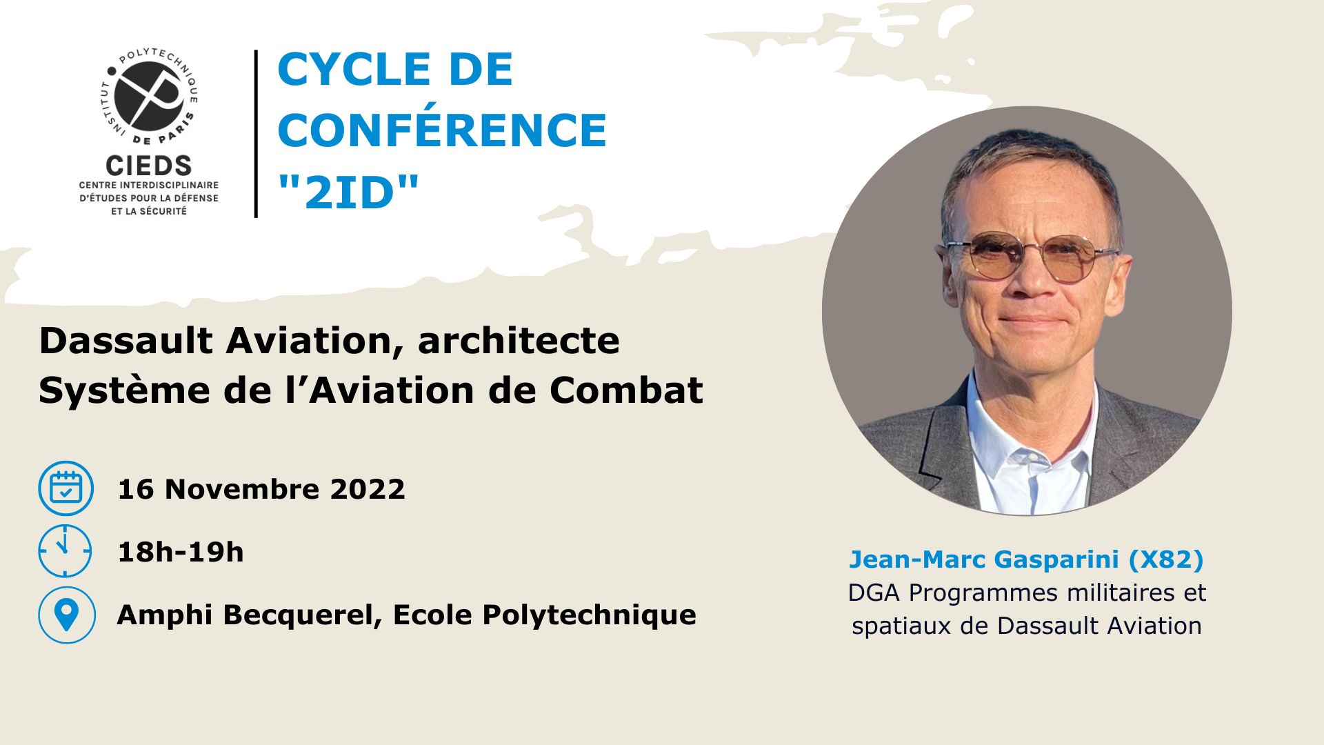 Jean-Marc Gasparini will present a conference (open to all) entitled "Dassault Aviation, System Architect for Combat Aviation" which will also be held in hybrid format (via zoom). The conference will be followed by a get together to facilitate direct exchanges with the speaker as well as with the CIEDS team.
